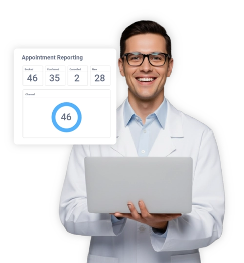 Patients can book online 24/7. Automated reminders reduce no-shows by 67%. Ease-of-use improves bookings 10-fold.